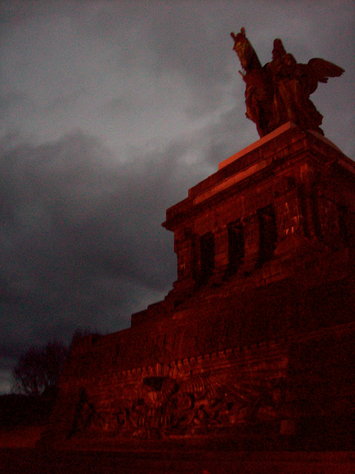 Cherie. It is fruity and hot and has wine and is topped with whipped cream. Quite yummy. After the market, we walked around Koblenz a bit and out to the Deutches Ech, the German Corner, where there is this monument to German Emperor Wilhelm I. |