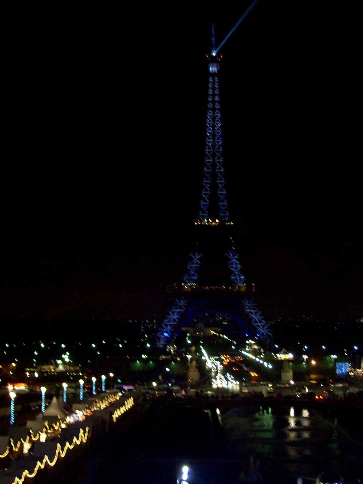 view the Eiffel Tower.Then we walked across the river, under the Eiffel and onto the park area on the opposite side. We watched the beginning of the next light show and then went to get in line