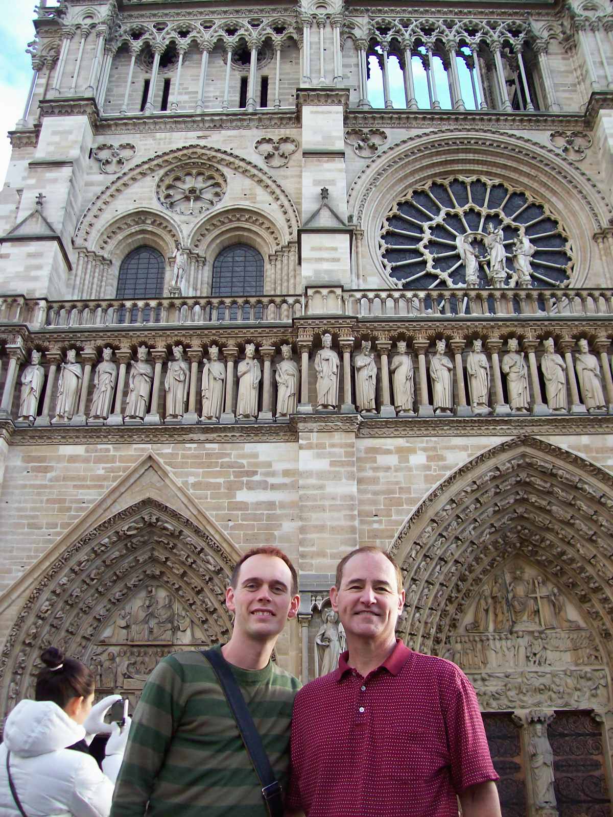 We also visited the famous Notre Dame cathedral in the center of Paris. We lit a candle there (for a 2 euro donation), and joined the throngs who crowded around the interior. The first time we arrived was just before the start of a free English-speaking tour, and the line of people snaked out and around the plaza outside. We decided to come back in the morning another day. |