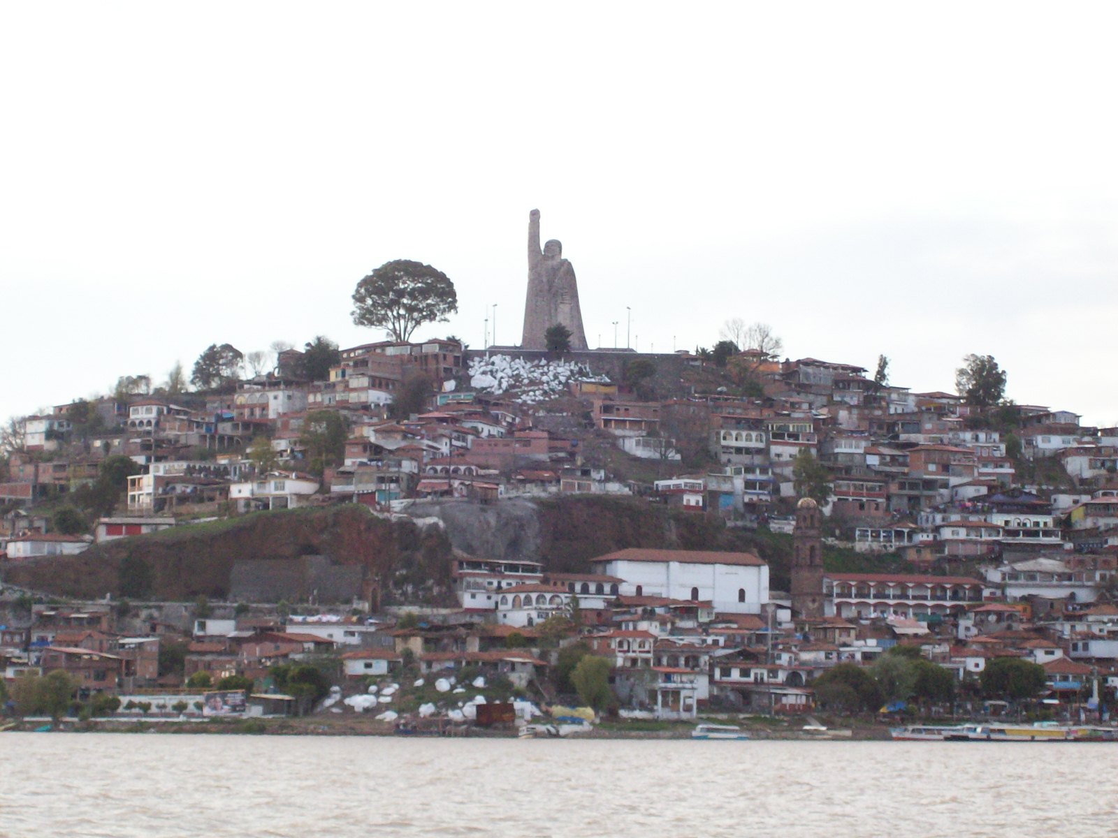 We took a boat trip to the island of Janitzio. It cost 40 pesos ($US 3.00) round-trip, each. The Purepecha people have lived on the island for centuries. In the past their livelihood was fishing using butterfly nets (which we saw from the boat on the way over), but now most income seems to come from tourism: food, accommodation and gauche souvenirs. And from the looks on their faces, the locals seem to resent this. |